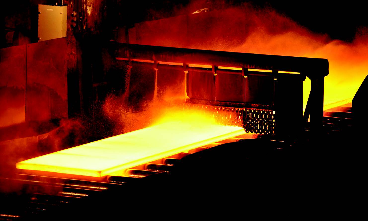 In the steelmaking process, molten pig iron produced in the blast furnace is transformed into crude steel in converters. The crude steel is then cast into long strips called slabs in continuous casting lines. The slabs, up to 10m long and weighing as much as 25 tons, are rolled and shaped to form strip steel or steel wire rolls. Glowing from heat, these slabs are transported on roller tables. To avoid high heat damage to the conveying rollers, the slabs must move continuously on the rollers until they cool down or are ready to enter the next processing step.