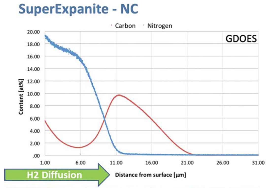“Our customers often ask whether the Expanite technology increases the risk of hydrogen embrittlement, which is not the case,” explains Dr Holger Selg, application expert and Expanite Sales Director DACH. “The cause of the hydrogen embrittlement can be traced back to the diffusion of the hydrogen into the material, and in theory the Expanite layer acts as a diffusion brake to a certain extent. Charged with nitrogen and carbon, the surface is harder for the hydrogen to penetrate than an untreated surface.”