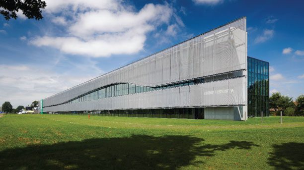 Although the jury is still out on whether it can be named the longest in the world, the new FACQ building’s 300-metre-long wire mesh façade cladding is certainly an eye-catcher on Belgium’s E40 highway. In collaboration with architect Gérard Courtoy and general contractor Verelst Bedrijfsbouw & Renovatie, Haver & Boecker realised the stainless steel mesh façade in Merelbeke.