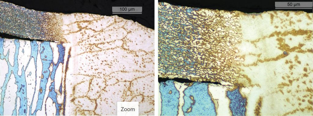 The very low corrosion of the diaphragm can be explained by its microstructure, which shows a much finer grain than that of the disc, made of forged bar E-Type stainless steel. This is clearly illustrated in Figures 1 and 2.