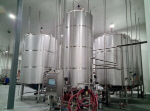 - 3 x 20,000L brew storage tanks (316 wetted parts), insulated and sheathed with provision for a side entry agitator.