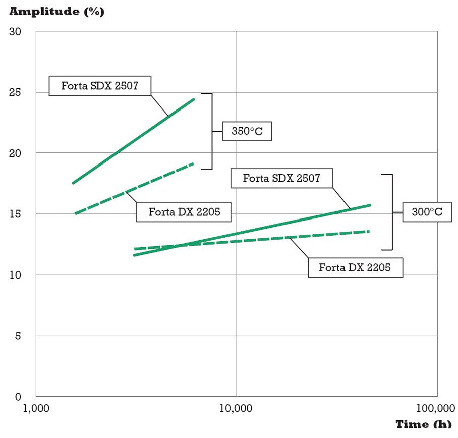 Most users know that at above 250 °C, duplex grades can be affected by embrittlement caused by spinodal decomposition. But is 250 °C an absolute limit? What is the effect of exposure time and do lean and super duplex behave differently?
