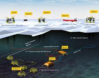 There are three elements to the PSC contract. Subsea 7 will design, procure and install three pipelines linking Maria to surrounding fields. These comprise the 26km production flowline, with direct electrical heating (DEH) cable connected to the Kristin platform, the 46km plastic-lined water injection pipeline from Heidrun, and the 22km pipeline that will supply lift gas to Maria from Åsgard via the Tyrihans subsea field.