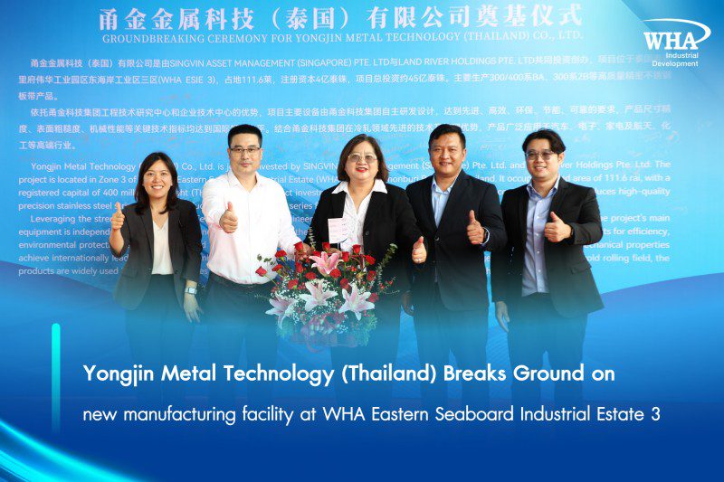 WHA Industrial Development Public Company Limited (WHAID) proudly joined the groundbreaking ceremony of Yongjin Metal Technology (Thailand) Co., Ltd. at WHA Eastern Seaboard Industrial Estate 3 (WHA ESIE 3), marking a significant milestone in Yongjin’s business expansion with an investment of over THB 4.5bn on a site spanning 179,000 square meters. This new facility underscores Yongjin’s long-term confidence in Thailand as a strategic manufacturing hub in the region.